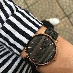 Montre Femme NATURE Cadran Noir Bracelet Cuir Noir