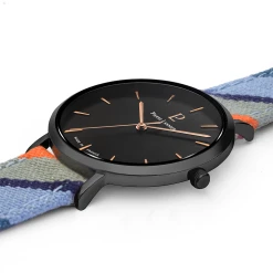 Montre Femme CATALANE Cadran Noir Bracelet Tissu Bleu