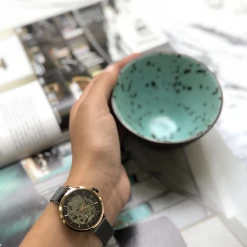 Montre Femme AUTOMATIC Cadran Argenté Bracelet Acier Milanais Doré