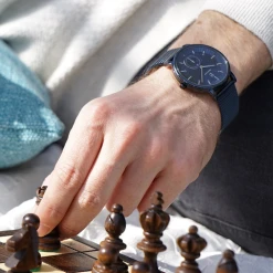 Montre Homme TRIO Cadran Noir Bracelet Cuir Noir