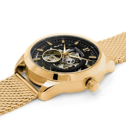 Montre Homme TRIO Cadran Noir Bracelet Acier Milanais Argenté