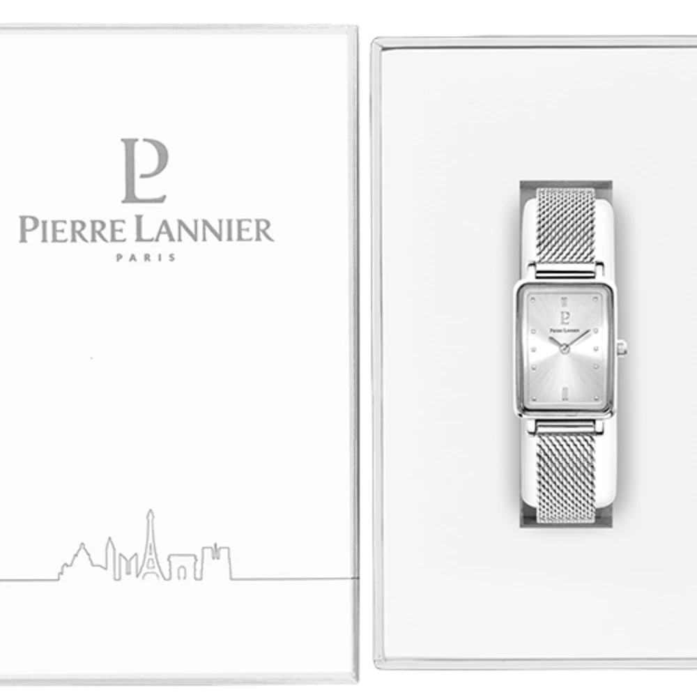 La montre Femme Ariane 056J621 possède un boitier argenté en acier inoxydable de forme rectangulaire. Les dimensions du boitier : 21 x 28.4 mm, pour 6.20mm d’épaisseur. Les index argentés sont représentés par de petits points carrés et les doubles index réaffirment le caractère de cette petite montre. Son cadran rectangulaire également et argenté, possède un bel effet soleillé qui la rend très lumineuse.