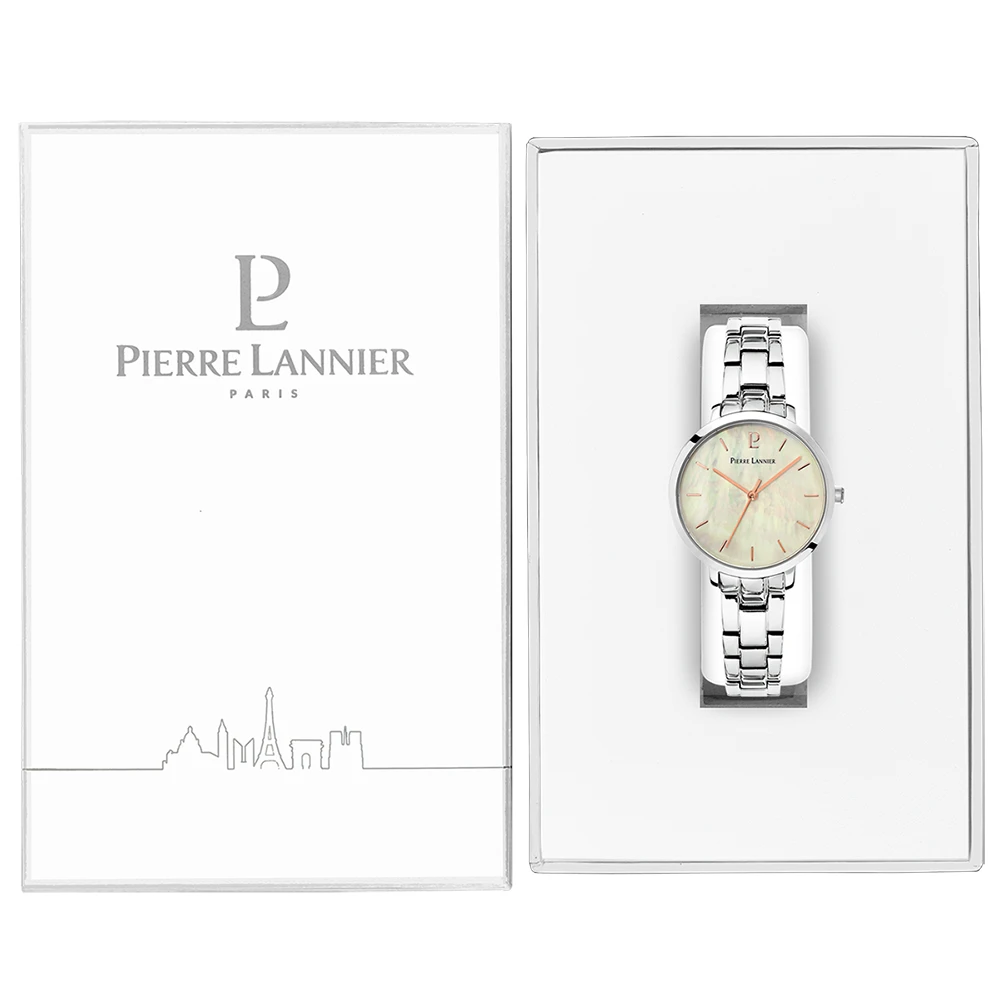 La montre femme 054K691 acier argenté Pierre Lannier vous sera livrée dans un écrin aux couleurs de la marque.