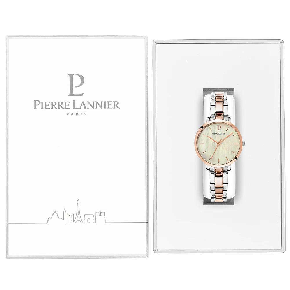 La montre femme 055M791 en acier doré rose Pierre Lannier sera livrée dans un écrin aux couleurs de la marque.