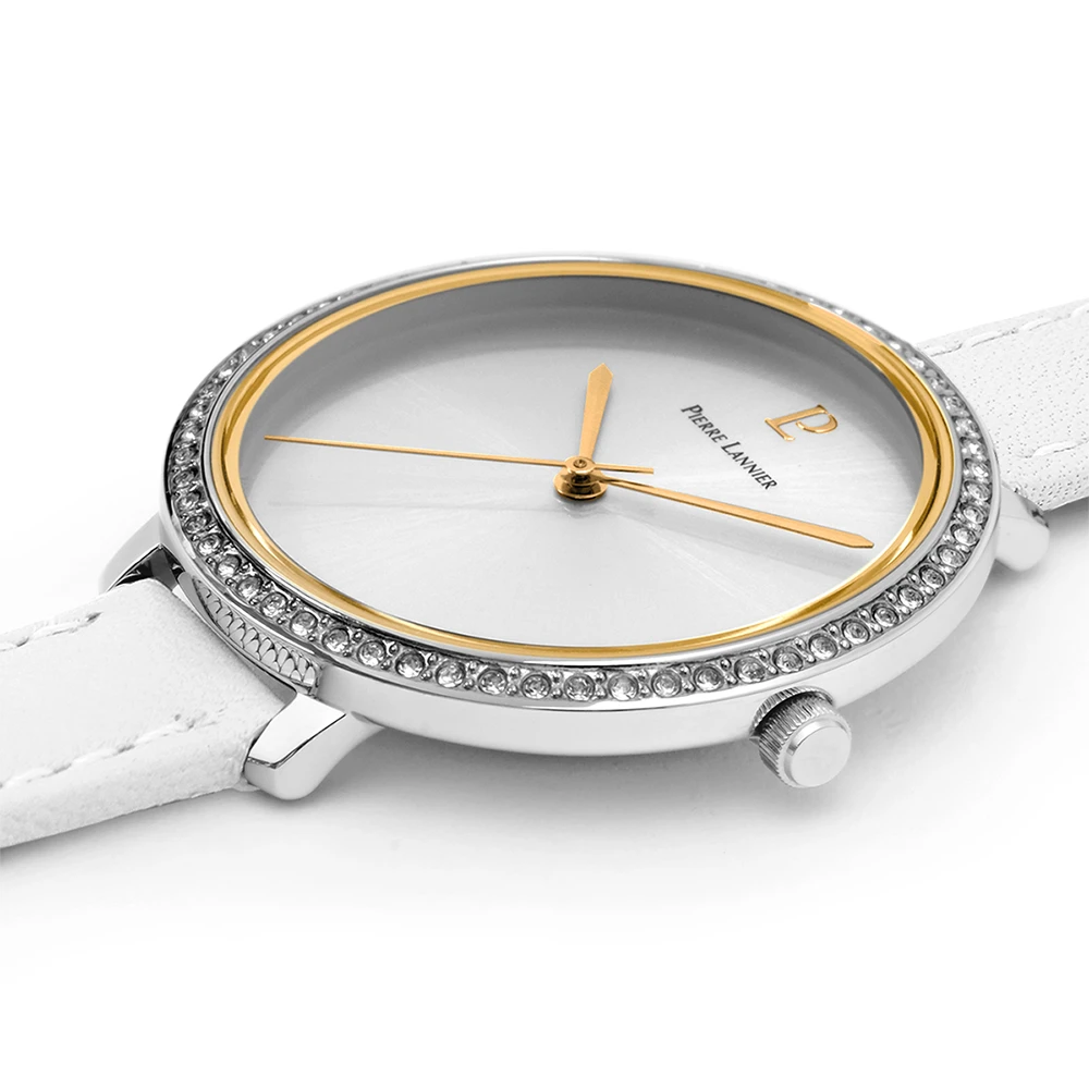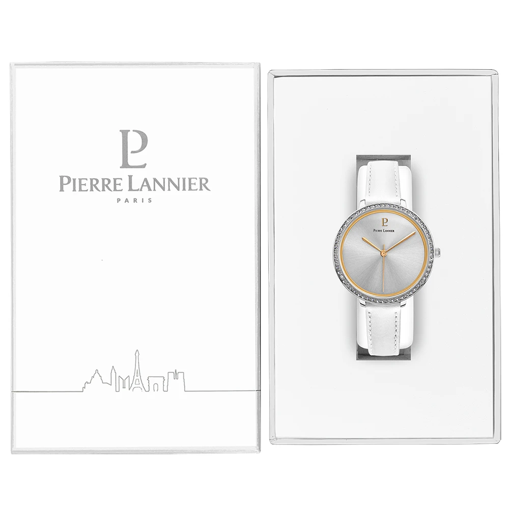 Votre Montre Femme Couture 011K620 Bracelet Cuir Blanc Pierre Lannier vous sera livrée dans un écrin de la marque accompagnée de sa garantie internationale de 2 ans.