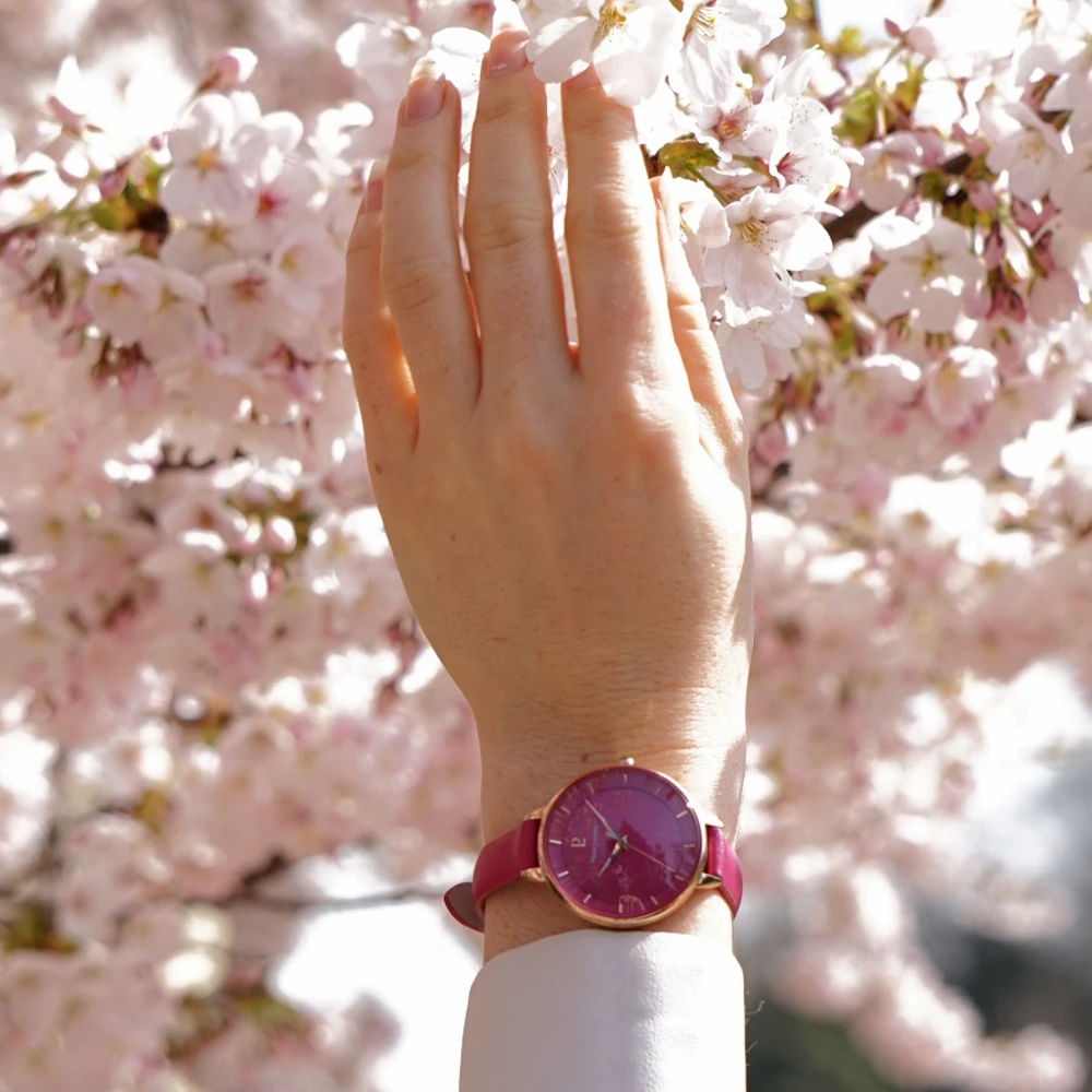 Notre designer s’est inspiré de l’univers gourmand des macarons pour créer ce design si particulier : un design bombé, tout en rondeur, qui apporte de la joie de vivre à votre poignet. Sa couleur total rose framboise en fait l’accessoire parfait si vous portez des couleurs, ou au contraire, si vous souhaitez trancher avec une tenue noire ou blanche.