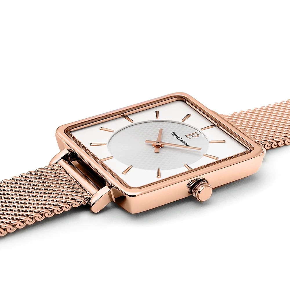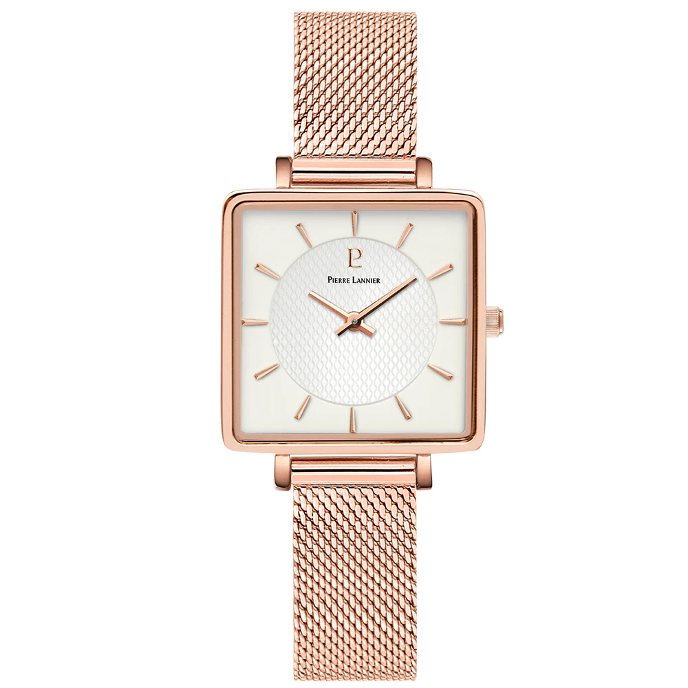 Équipée d’un bracelet en acier milanais de couleur doré-rose de 14 mm de largeur et d’un boîtier de forme carré de 30mm * 30mm aux mêmes tons, la montre femme 008F928 allie solidité et élégance. Son bracelet, pratique, s’ajustera facilement à chaque tour de poignet.