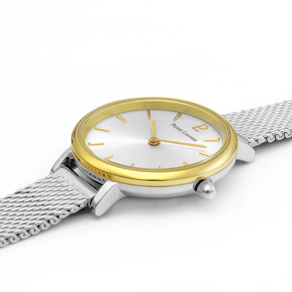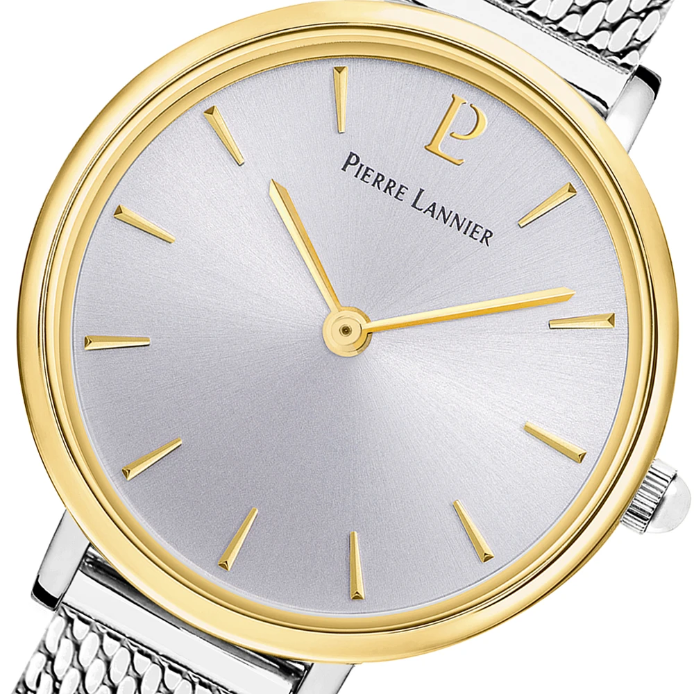 Votre montre femme 014J728 acier milanais argenté Pierre Lannier vous sera livrée dans un écrin de la marque accompagnée de sa garantie internationale de 2 ans.