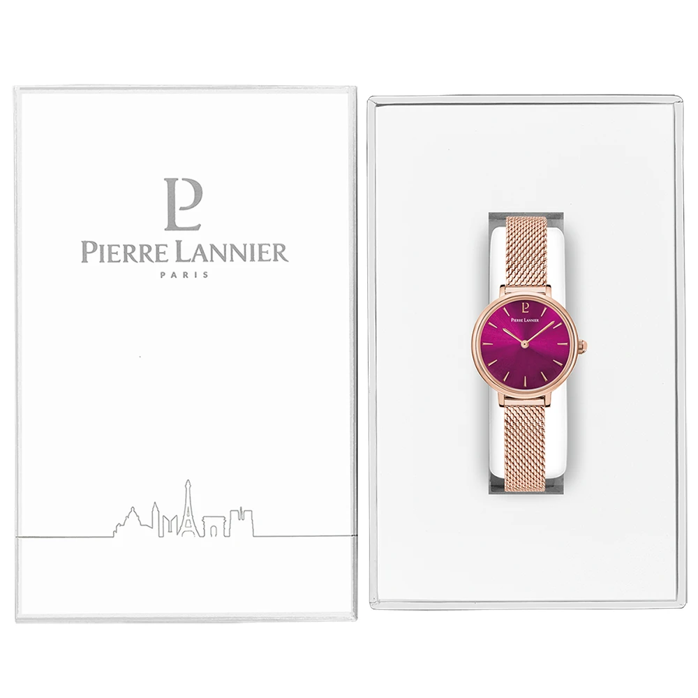 votre poignet. Les index et aiguilles de couleur doré rose se démarquent du