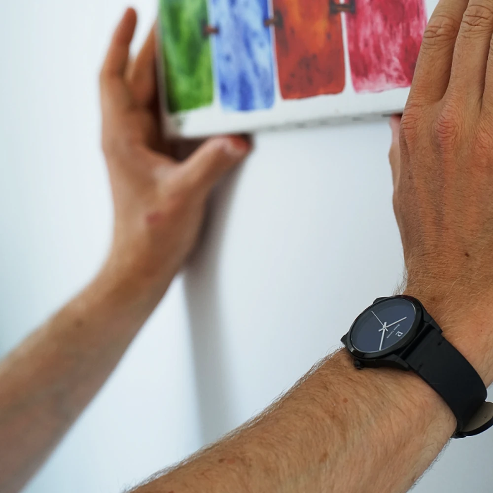 Cadran Bleu Bracelet Cuir Noir. Son apparence minimaliste aux inspirations futuristes