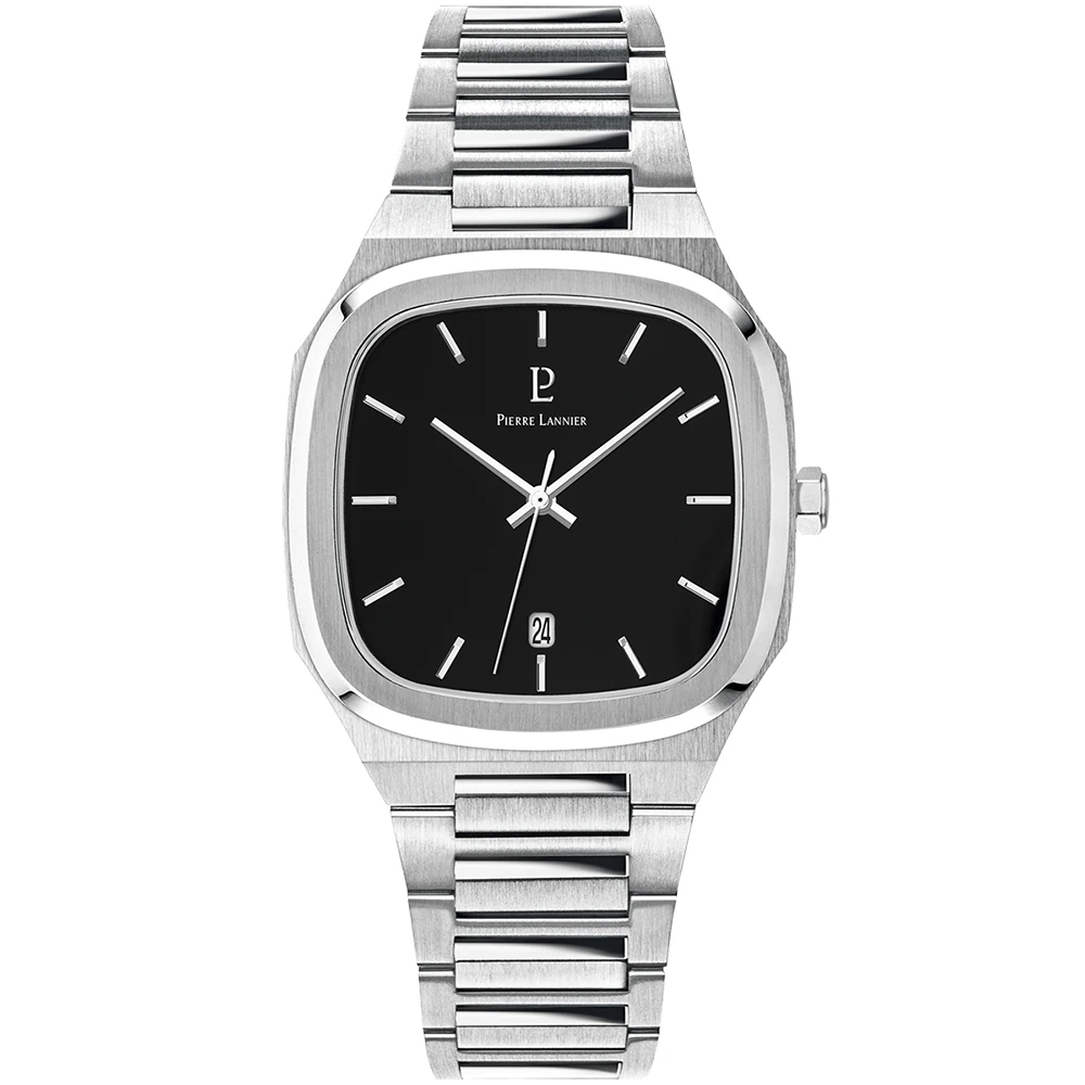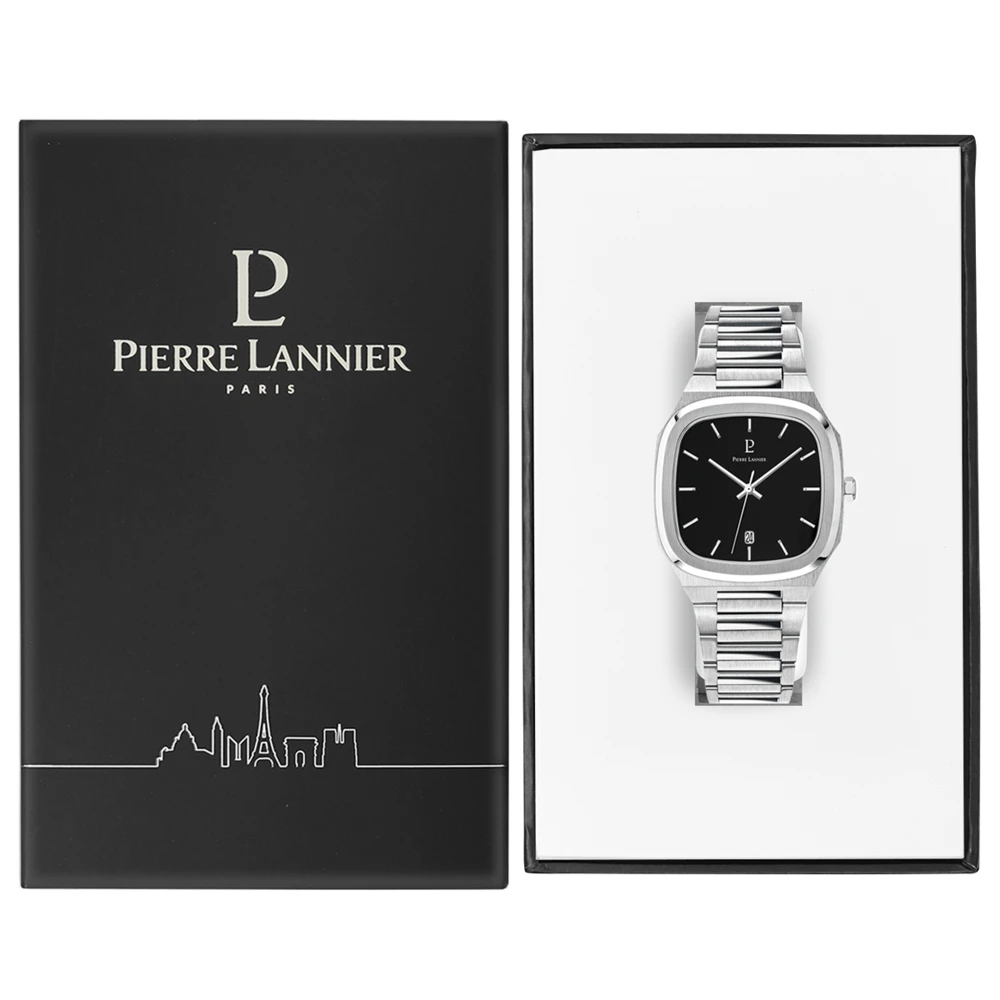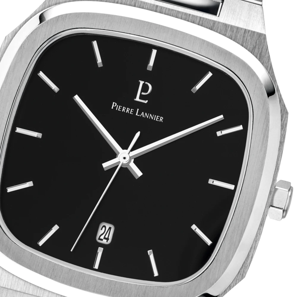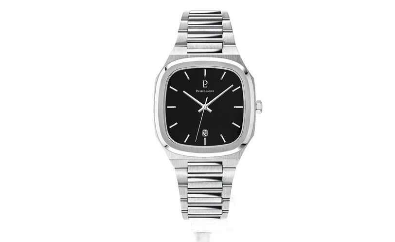 Avec son boitier carré aux bords arrondis, la montre Homme Contraste 261J131 est la première montre Homme de Pierre Lannier a avoir cette forme si originale. De couleur argentée, le boitier abrite un cadran noir, carré également, qui contraste avec l’acier argenté du boitier et du bracelet. A l’intérieur, index et aiguilles sont de couleur argentées également, et la montre possède un dateur, à 6H.
