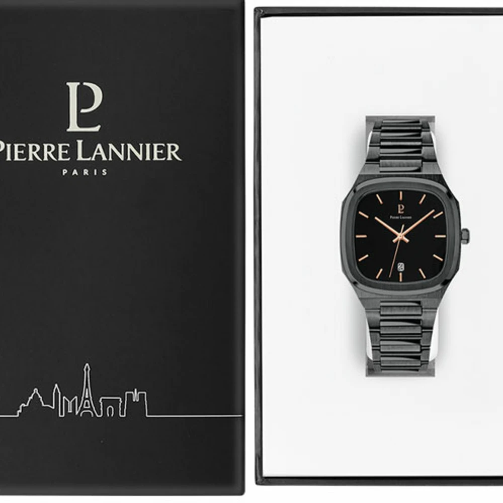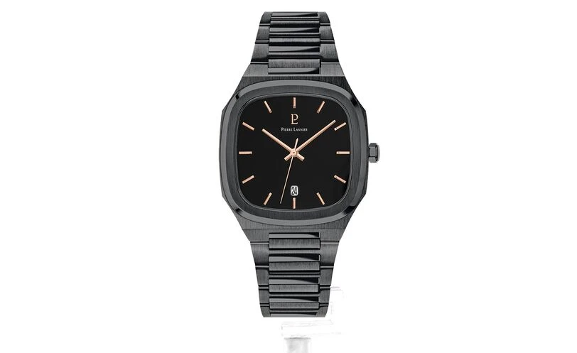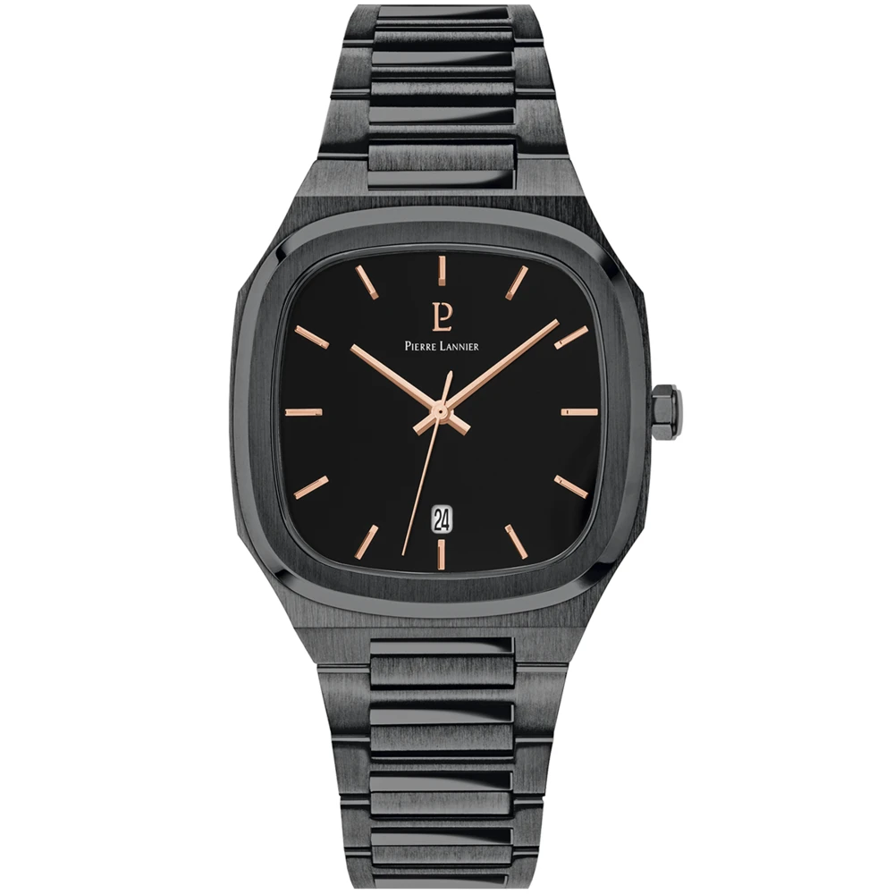 La montre Homme Contraste 263H439 acier noir est dotée d’un boitier carré en acier noir brossé, de 40mm x 40mm, aux bords arrondis. Avec son cadran carré noir également , elle arbore un total look noir, qui lui donne une élégance contemporaine. Ses index et aiguilles de couleur doré rose ressortent remarquablement, et permettent une lecture facile, tout comme le dateur situé à 6h.