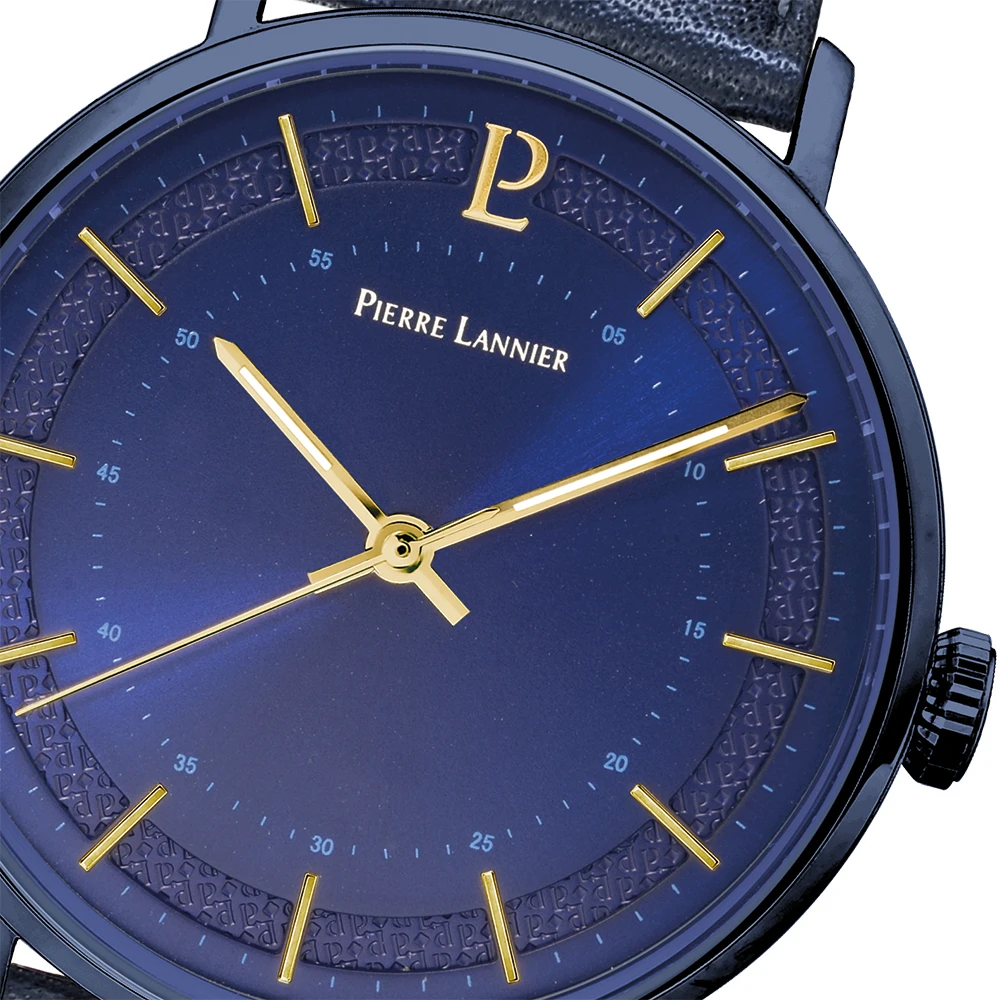 Les 3 aiguilles et le logo PL à 12h sont de couleur dorée, et illuminent ce