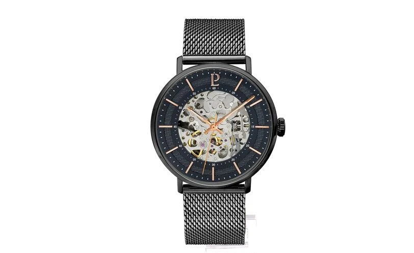 Son bracelet en acier milanais noir mesure 20 mm de largeur.