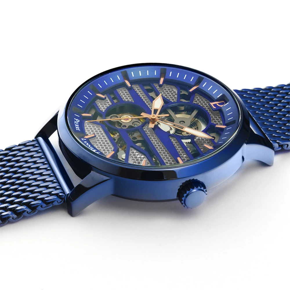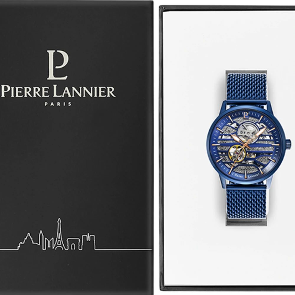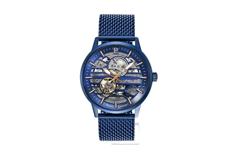 boitier est en acier inoxydable bleu, et fait 43mm de diamètre.