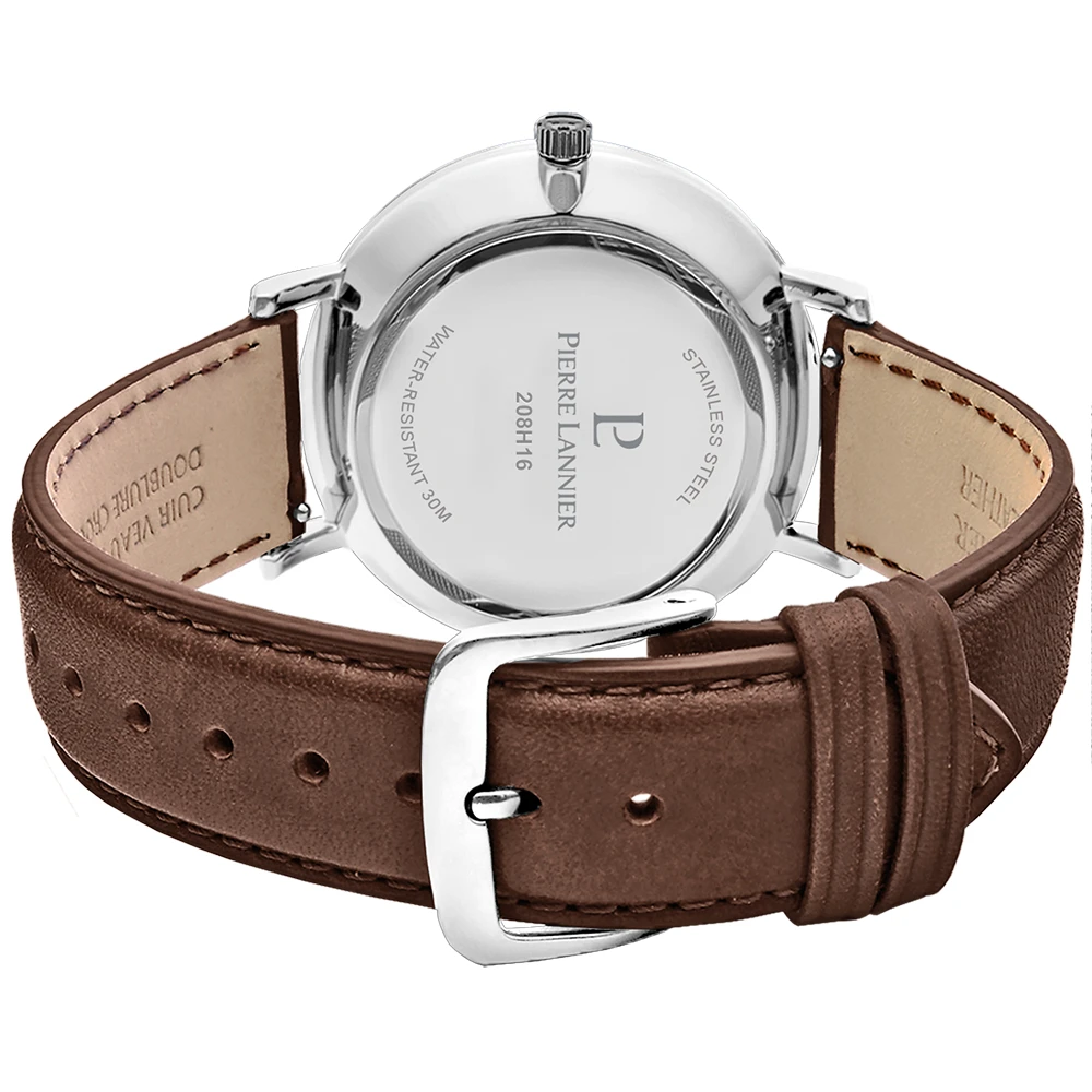 Le bracelet de la montre Homme Solaire 208H164 fait 18mm de large, et est en cuir brun lisse. La boucle ardillon argentée vous permettra de l’ajuster facilement à votre poignet. De plus cette montre possède le système de bracelets interchangeables pour changer et personnaliser votre montre facilement !