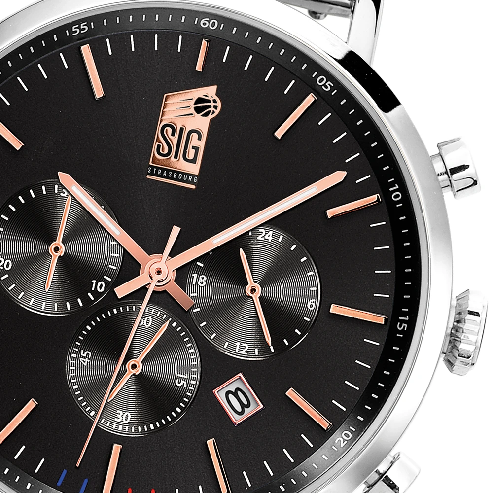 À la fois finement travaillée et minimaliste, la montre Homme SIG est un modèle à posséder absolument dans votre collection. Portez fièrement les couleurs de votre équipe jusqu’au poignet !