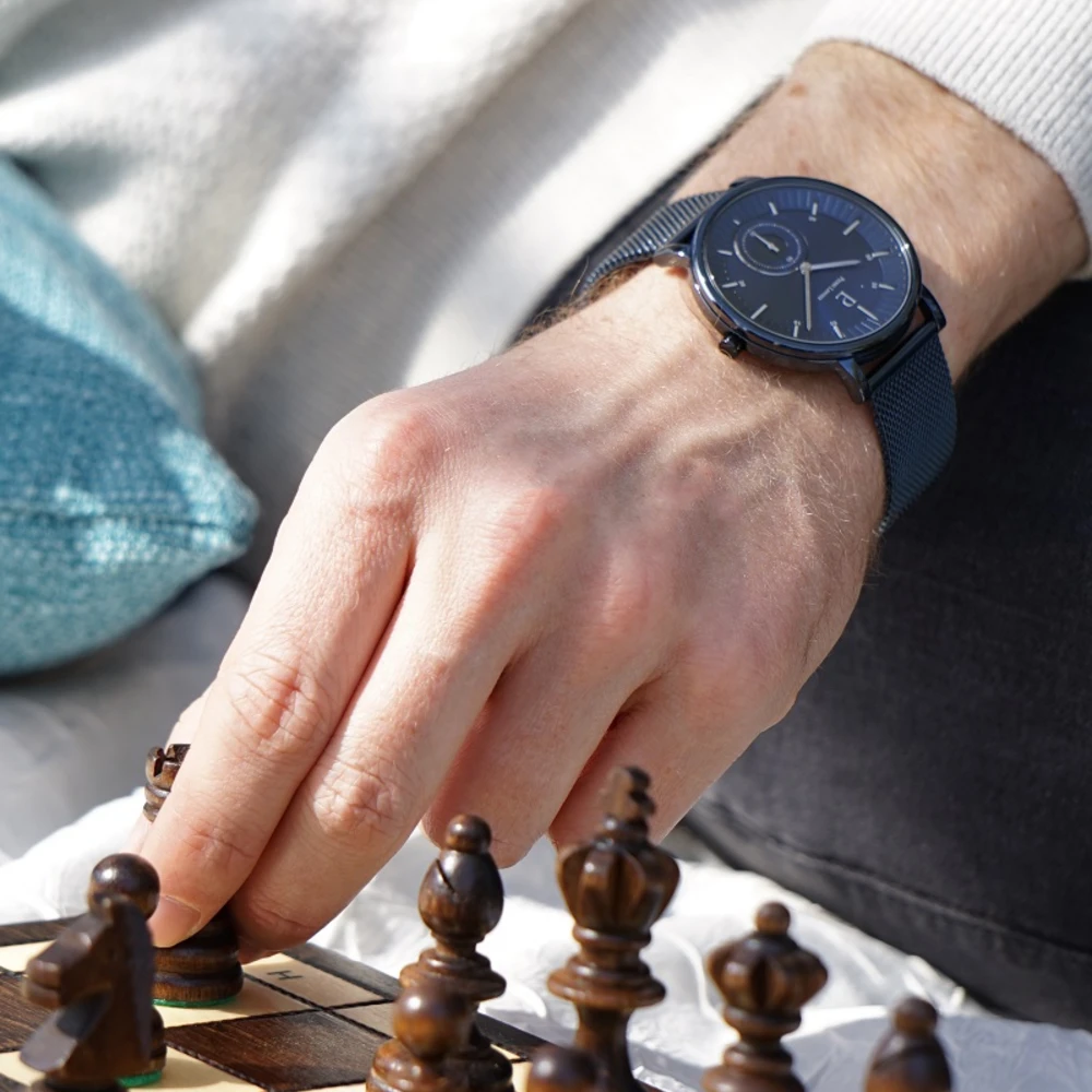 Le bracelet de la montre Homme Woofer est en maille milanaise, de couleur bleu et fait 20mm de large. Il est interchangeable : c’est-à-dire que d’un simple geste, vous pourrez l’ôter pour le remplacer par un autre bracelet de 20mm, en cuir par exemple ou une autre couleur d’acier milanais.