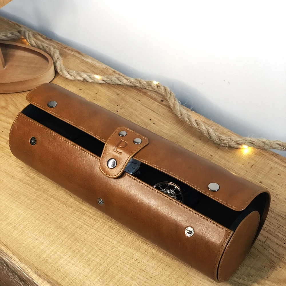 La pochette en cuir pour montres se ferme avec 3 boutons